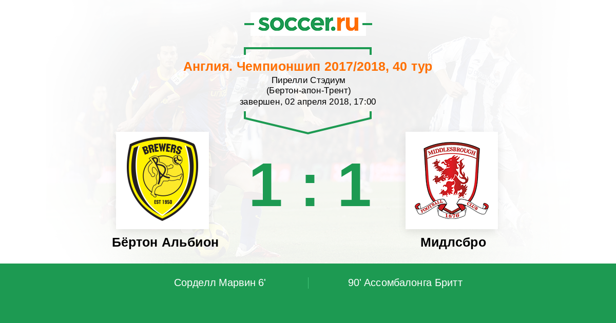Протокол матча Бёртон Альбион против Мидлсбро