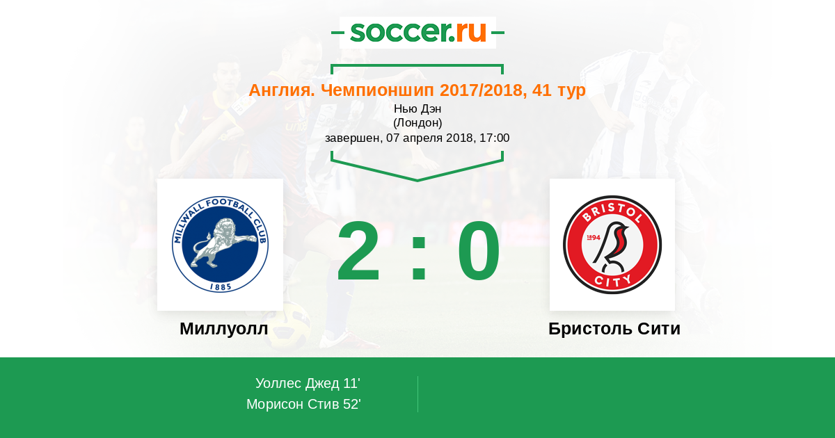 Протокол матча Миллуолл против Бристоль Сити