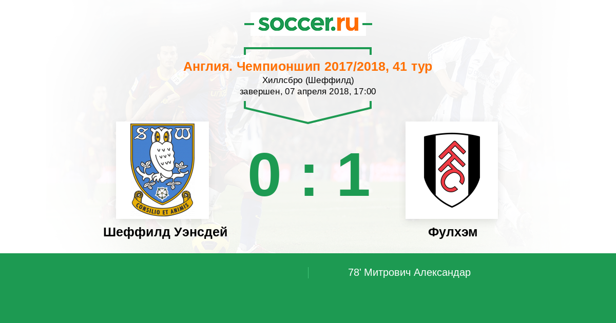 Протокол матча Шеффилд Уэнсдей против Фулхэм