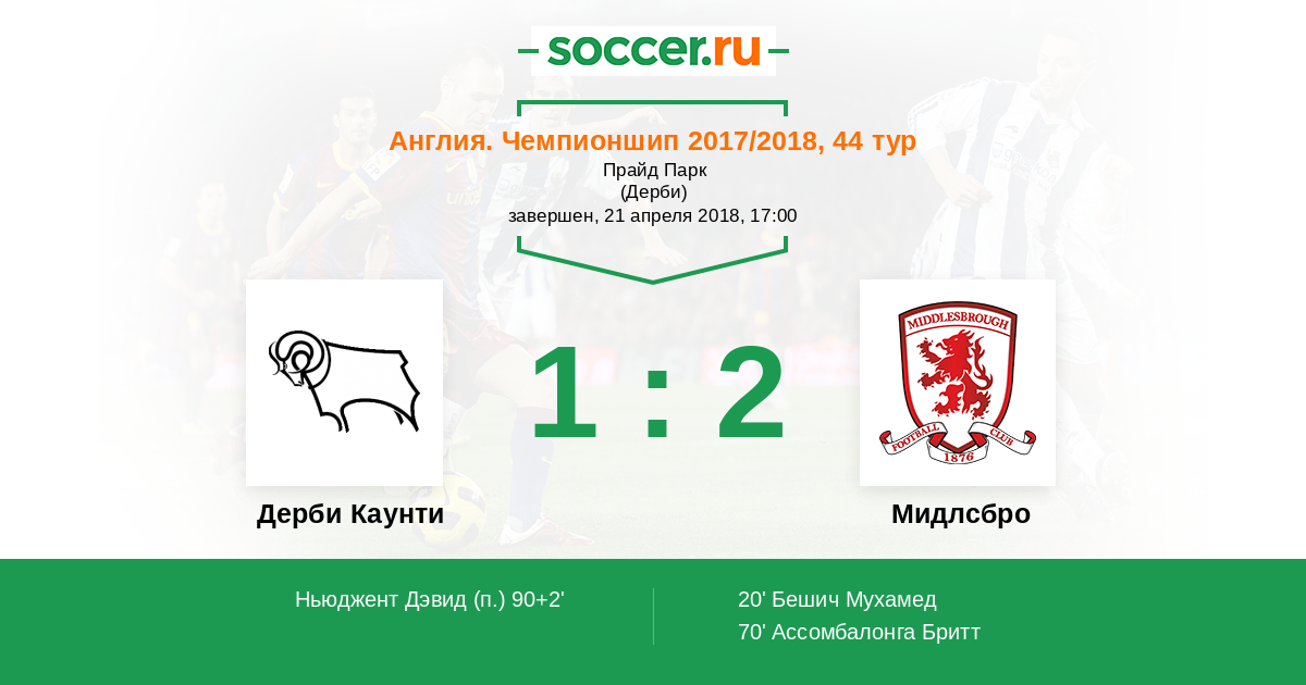 Протокол матча Дерби Каунти против Мидлсбро