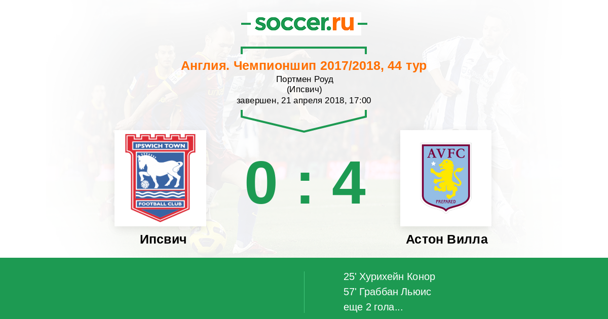 Протокол матча Ипсвич против Астон Вилла