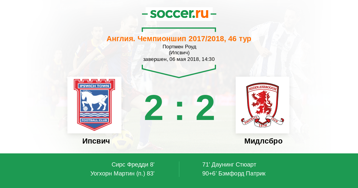 Протокол матча Ипсвич против Мидлсбро