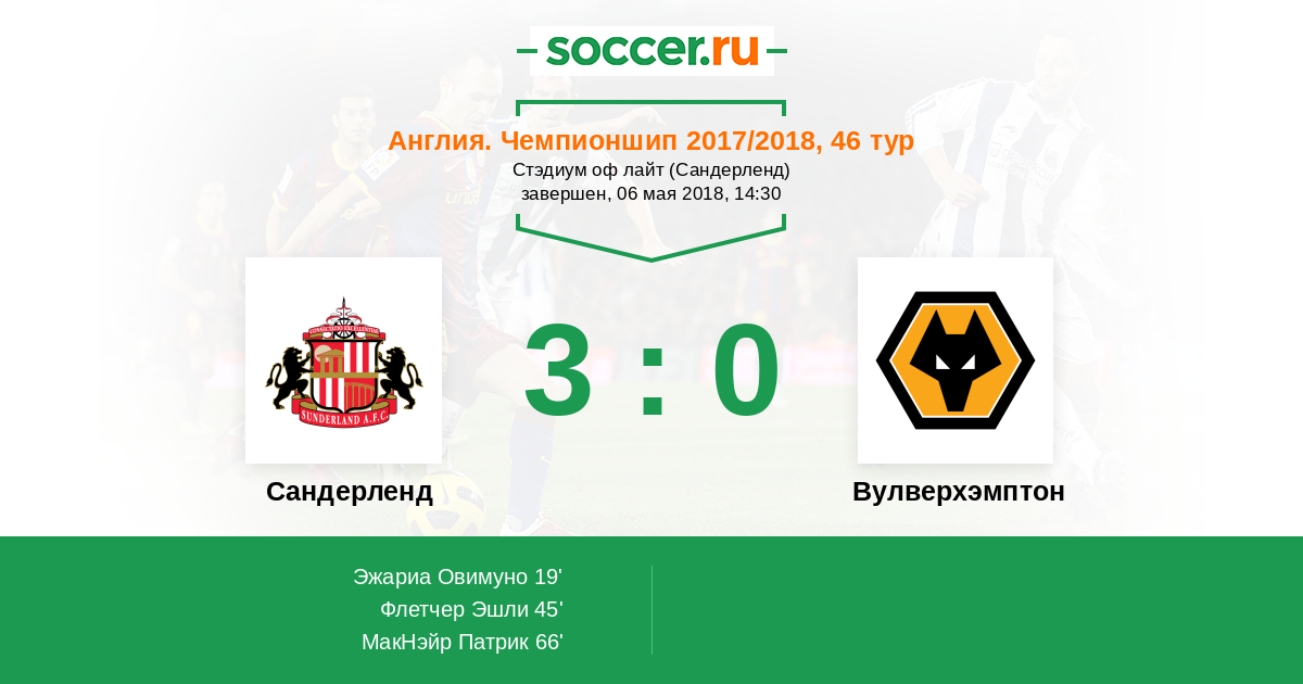 Протокол матча Сандерленд против Вулверхэмптон
