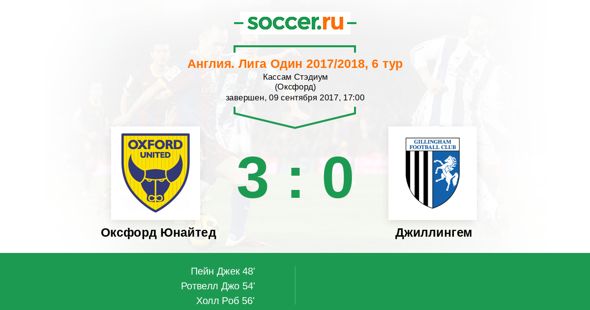 Протокол матча Оксфорд Юнайтед против Джиллингем