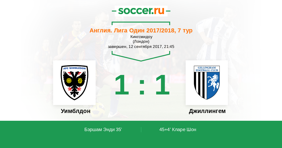 Протокол матча Уимблдон против Джиллингем