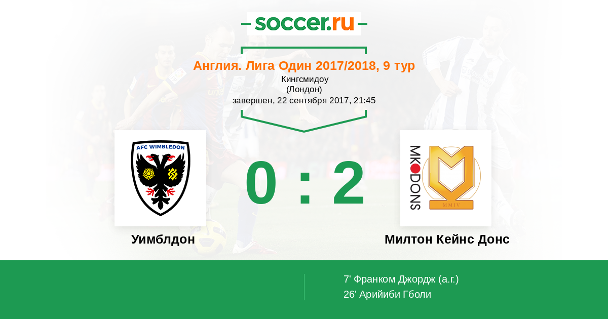 Протокол матча Уимблдон против Милтон Кейнс Донс