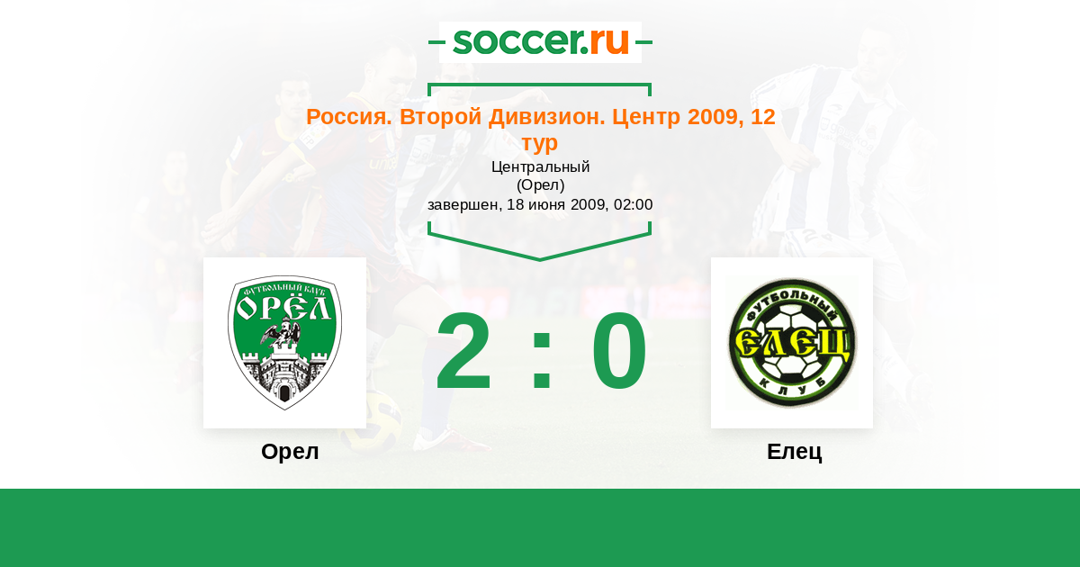 Россия. Вторая лига. Группа 3 18.09.2009 Елец Логотип футбольный клуб Елец 0:3 Логотип футбольный клуб Орел Орел