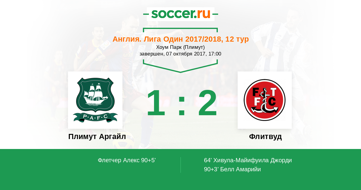 Протокол матча Плимут Аргайл против Флитвуд