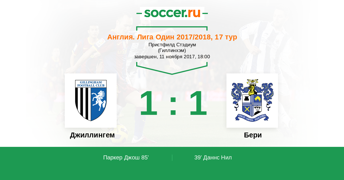 Протокол матча Джиллингем против Бери