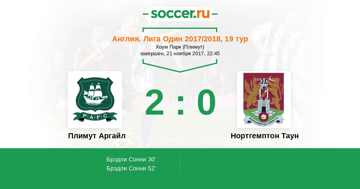 Протокол матча Плимут Аргайл против Нортгемптон Таун