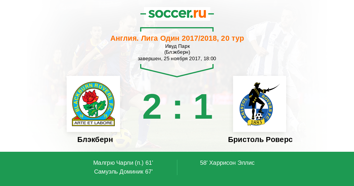 Протокол матча Блэкберн против Бристоль Роверс