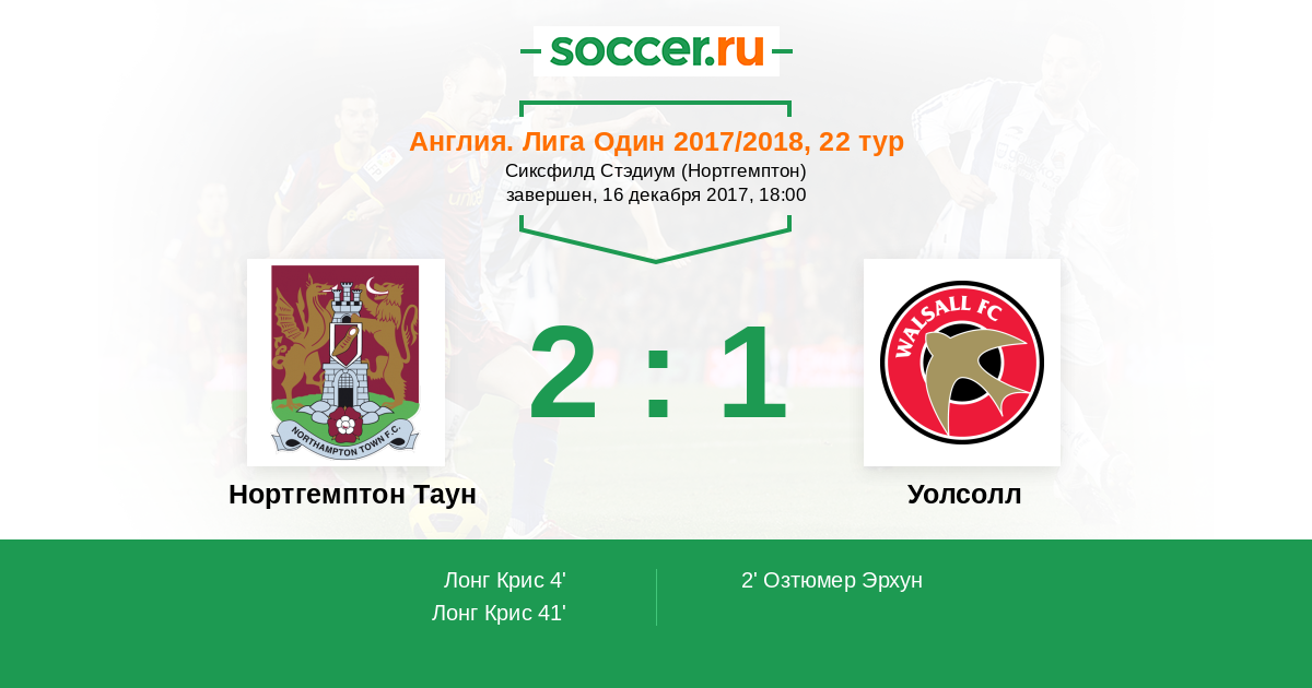 Протокол матча Нортгемптон Таун против Уолсолл