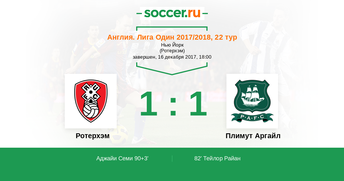 Протокол матча Ротерхэм против Плимут Аргайл