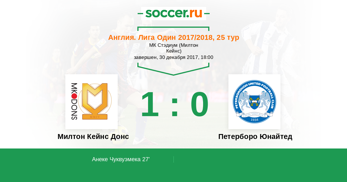 Протокол матча Милтон Кейнс Донс против Петерборо Юнайтед