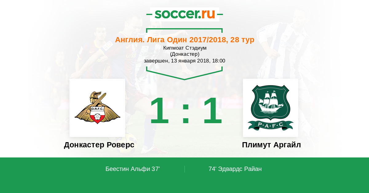 Протокол матча Донкастер Роверс против Плимут Аргайл