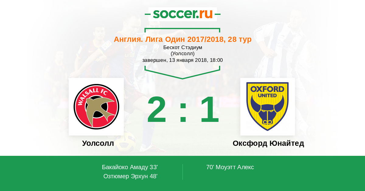 Протокол матча Уолсолл против Оксфорд Юнайтед