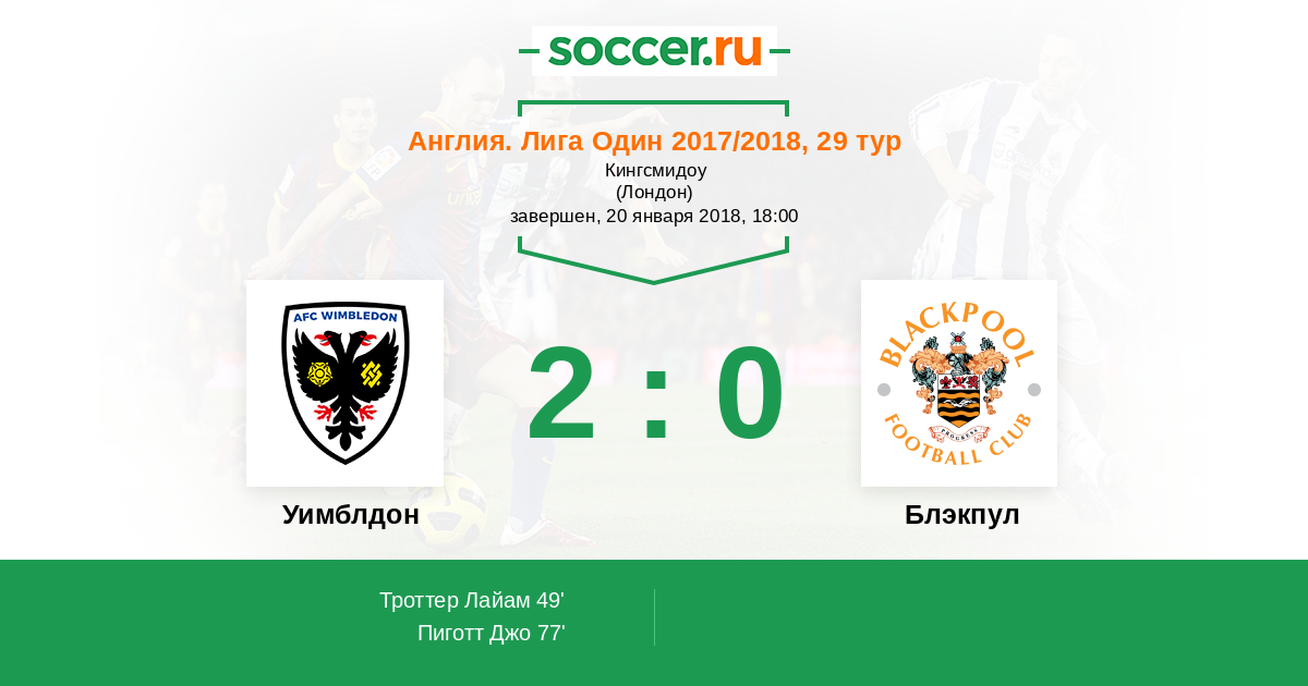 Протокол матча Уимблдон против Блэкпул