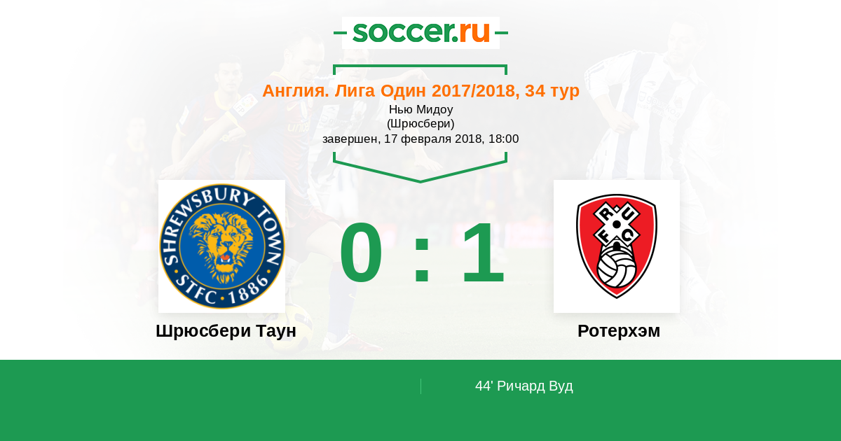 Протокол матча Шрюсбери Таун против Ротерхэм