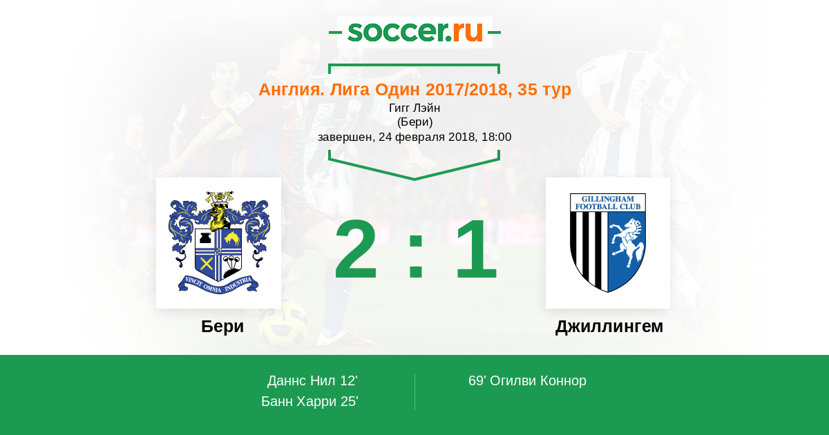 Протокол матча Бери против Джиллингем