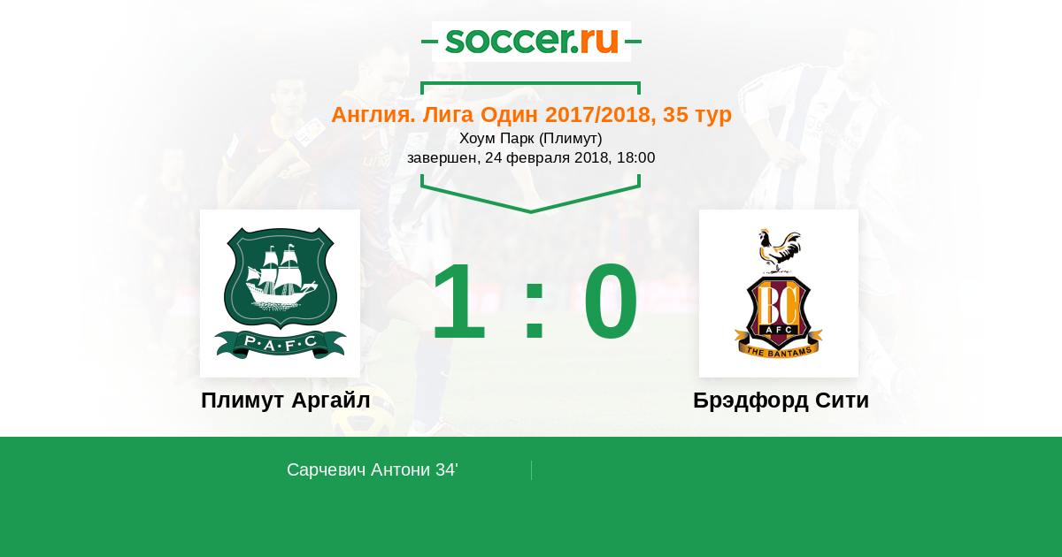 Протокол матча Плимут Аргайл против Брэдфорд Сити