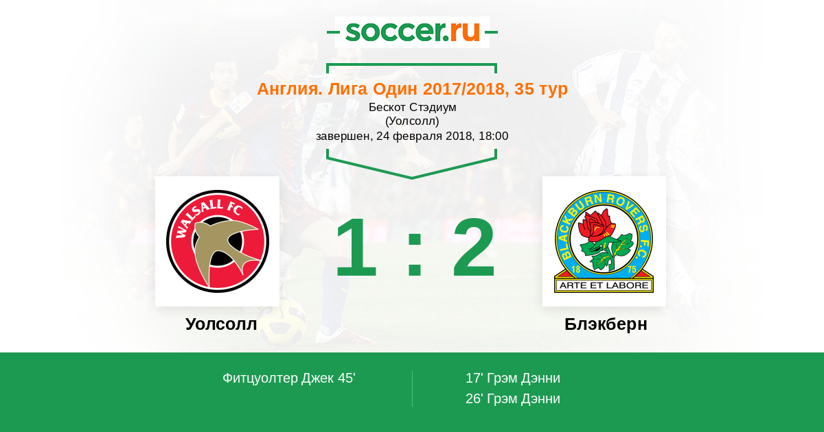 Протокол матча Уолсолл против Блэкберн