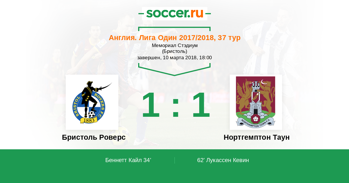 Протокол матча Бристоль Роверс против Нортгемптон Таун