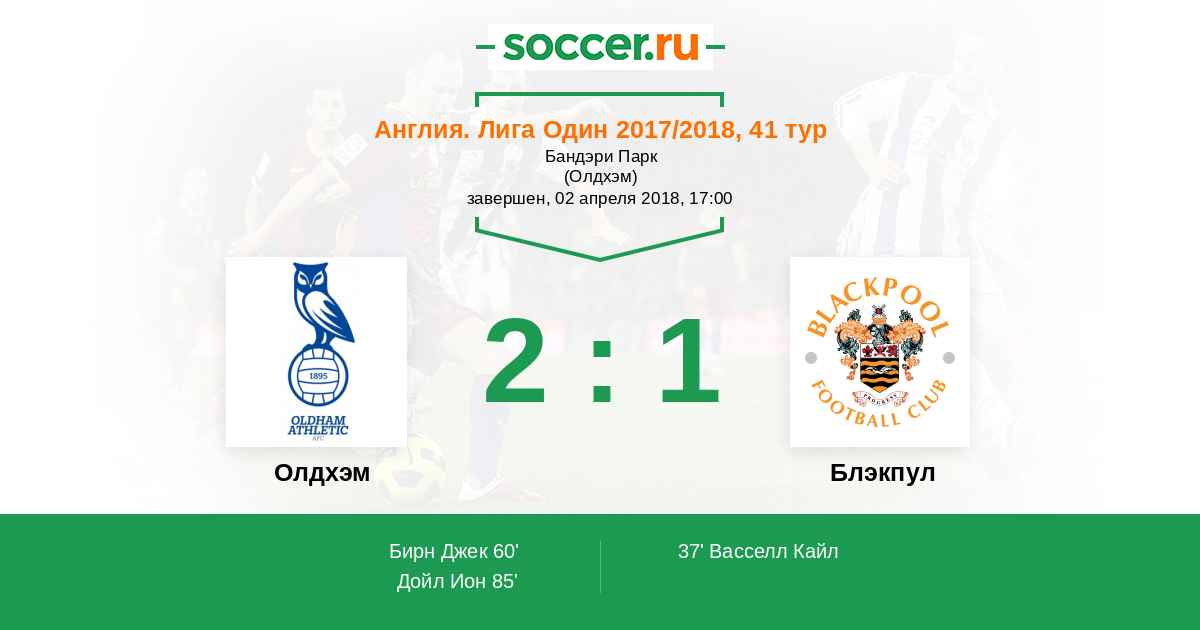 Протокол матча Олдхэм против Блэкпул