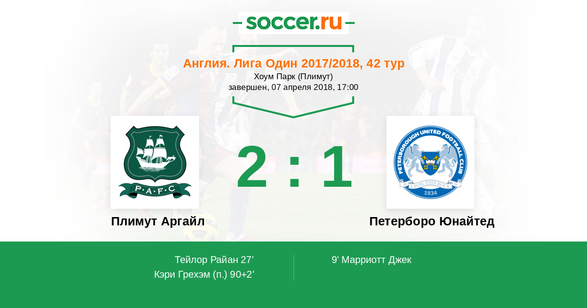 Протокол матча Плимут Аргайл против Петерборо Юнайтед