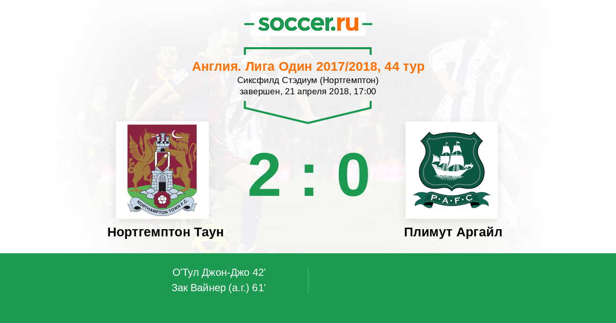 Протокол матча Нортгемптон Таун против Плимут Аргайл