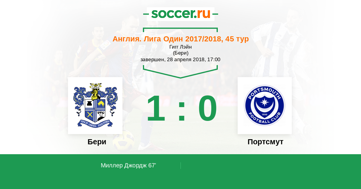 Протокол матча Бери против Портсмут