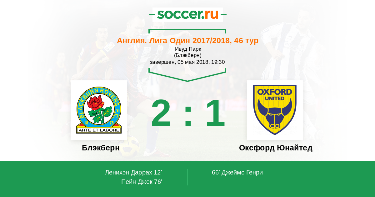 Протокол матча Блэкберн против Оксфорд Юнайтед
