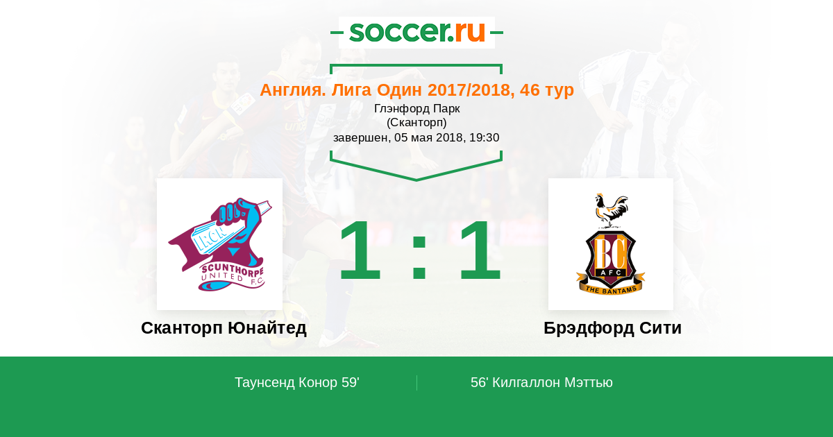 Протокол матча Сканторп Юнайтед против Брэдфорд Сити