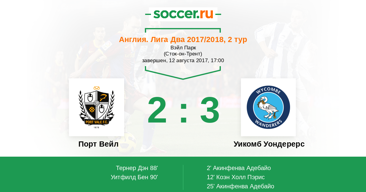 Протокол матча Порт Вейл против Уикомб Уондерерс
