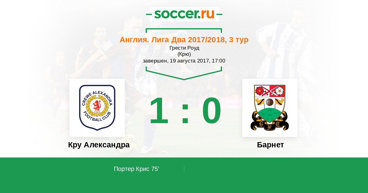 Протокол матча Кру Александра против Барнет