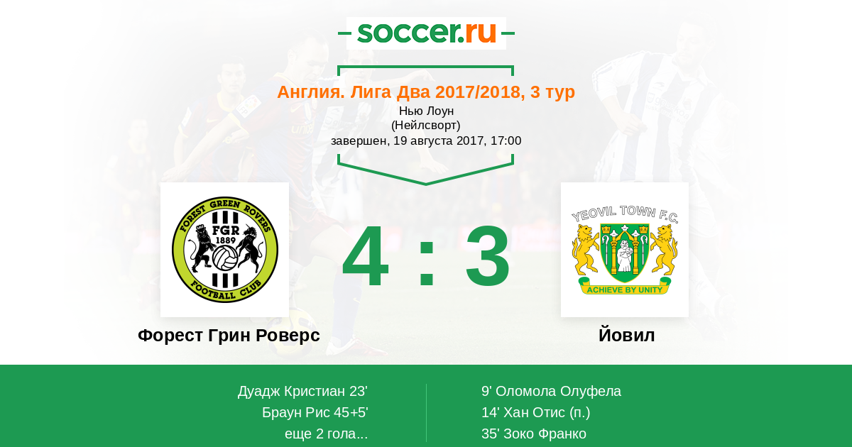 Протокол матча Форест Грин Роверс против Йовил
