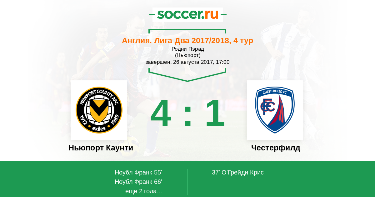Протокол матча Ньюпорт Каунти против Честерфилд