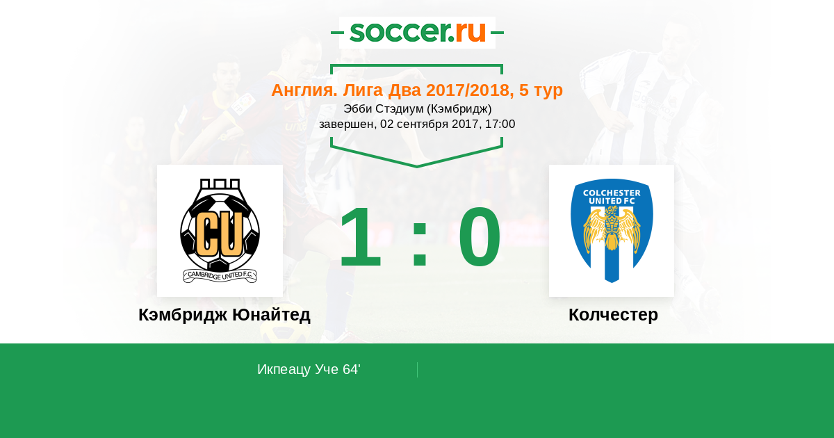 Протокол матча Кэмбридж Юнайтед против Колчестер