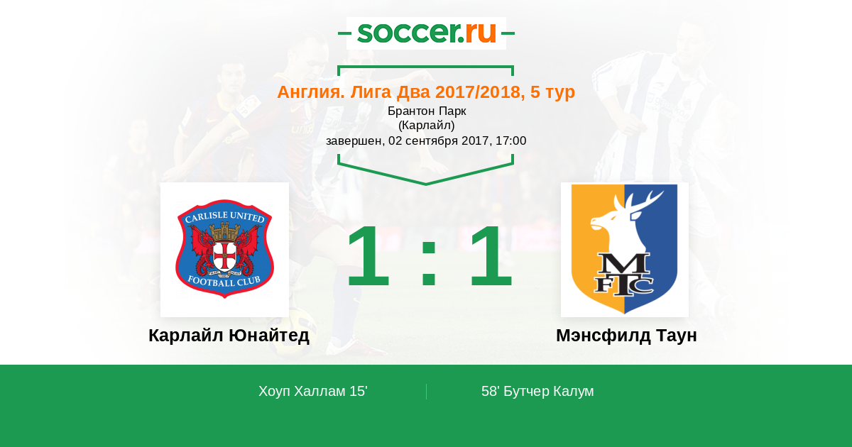 Протокол матча Карлайл Юнайтед против Мэнсфилд Таун
