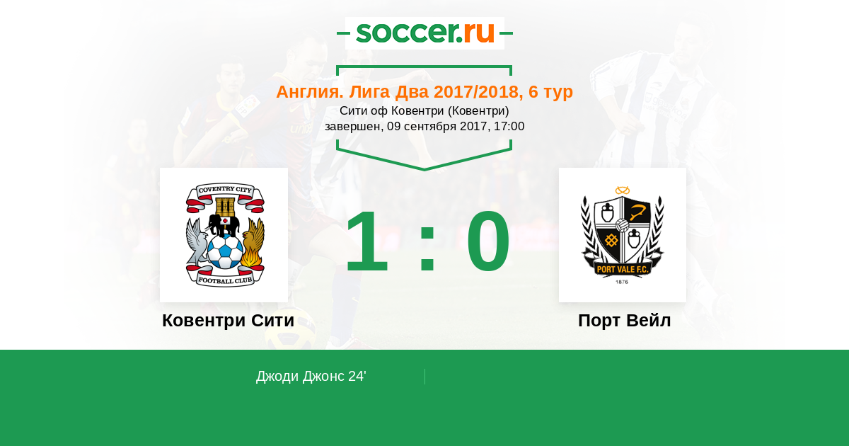 Протокол матча Ковентри Сити против Порт Вейл