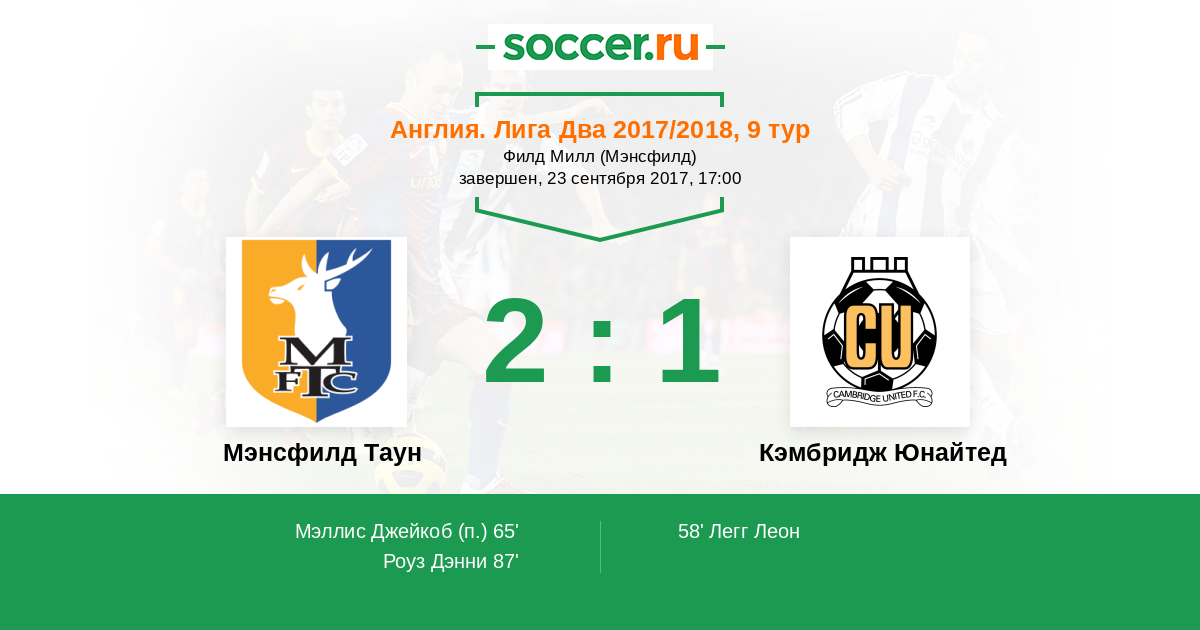 Протокол матча Мэнсфилд Таун против Кэмбридж Юнайтед