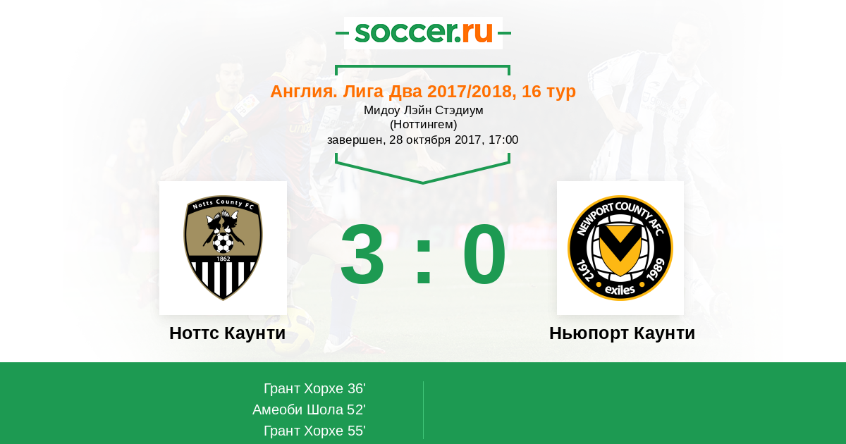 Протокол матча Ноттс Каунти против Ньюпорт Каунти