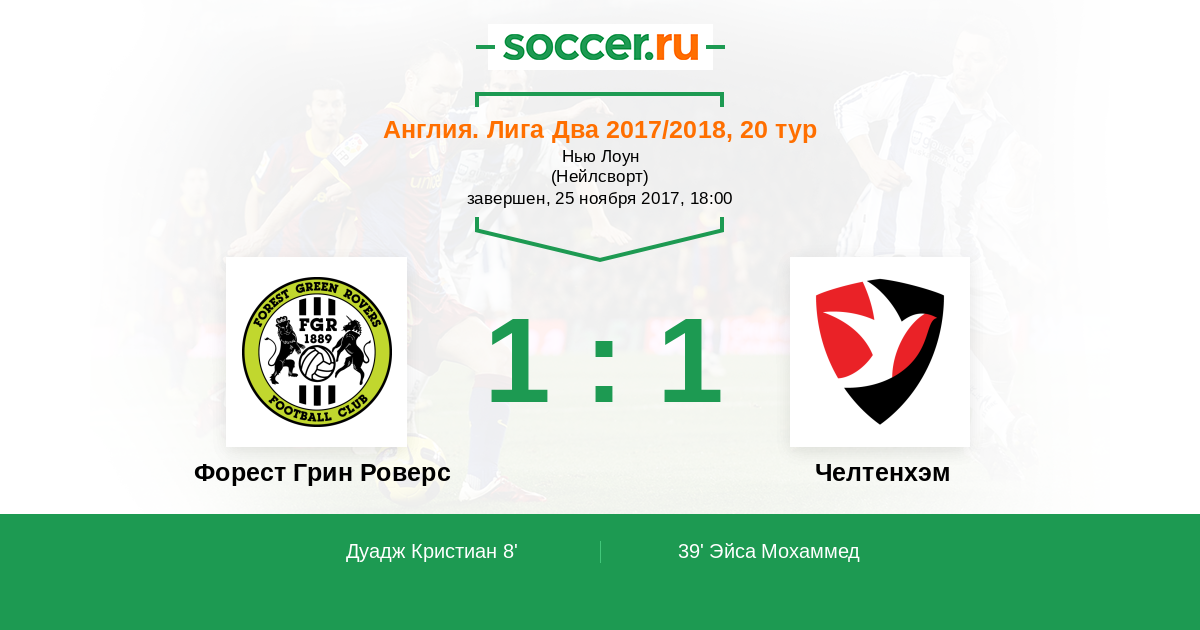 Протокол матча Форест Грин Роверс против Челтенхэм
