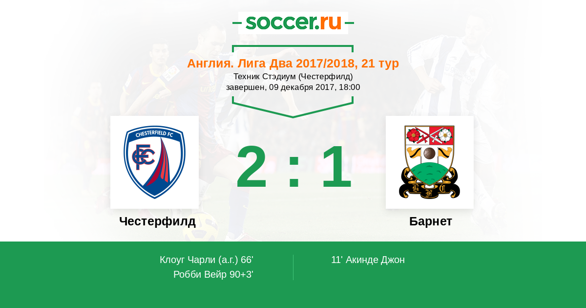 Протокол матча Честерфилд против Барнет