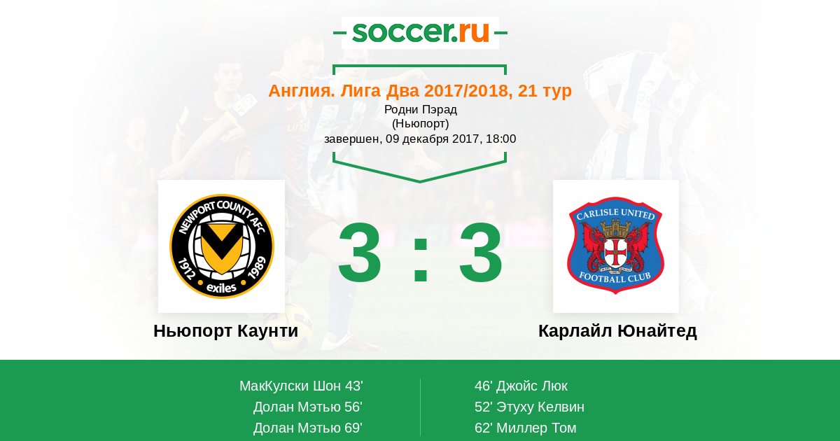 Протокол матча Ньюпорт Каунти против Карлайл Юнайтед