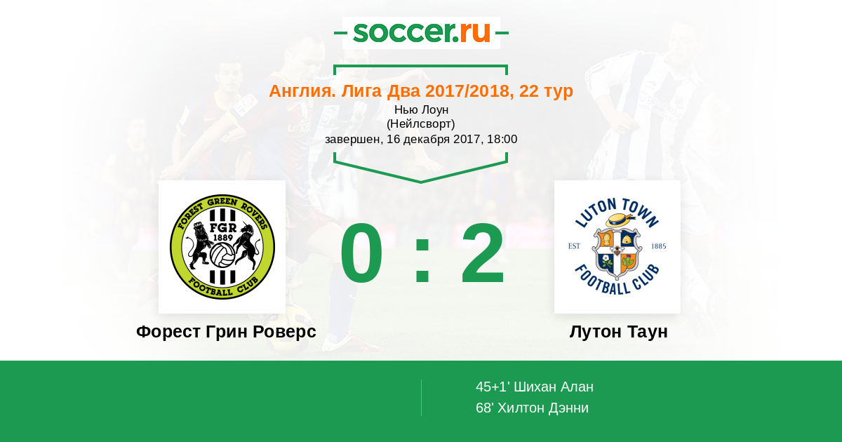 Протокол матча Форест Грин Роверс против Лутон Таун