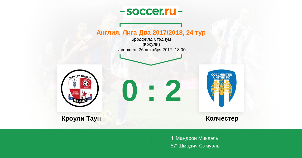 Протокол матча Кроули Таун против Колчестер