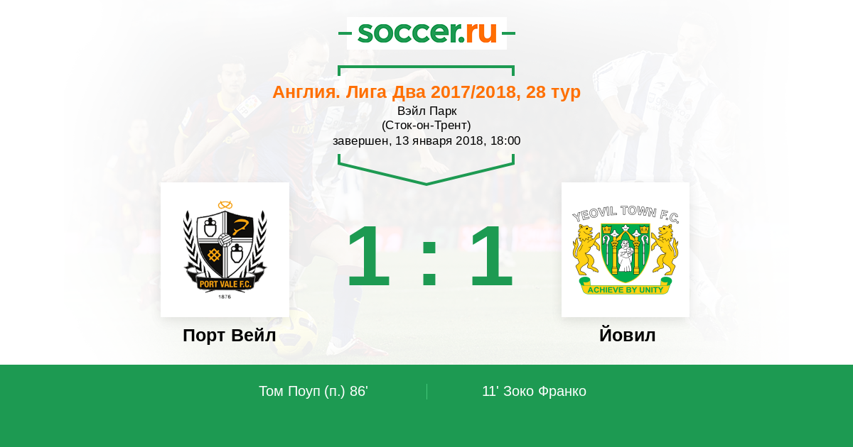 11' (0:1) Зоко Франко (13) (Сарридж Сэм (14))