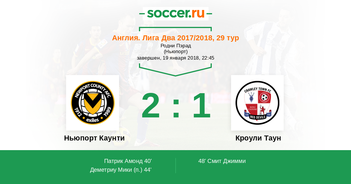 Протокол матча Ньюпорт Каунти против Кроули Таун