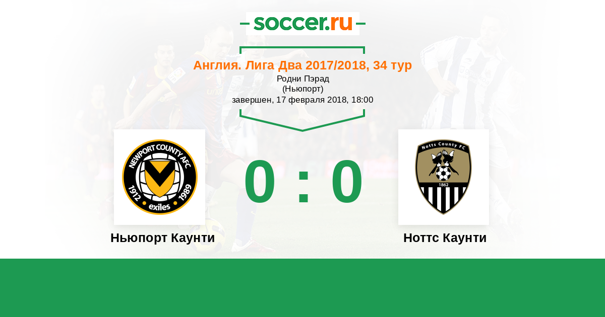 Протокол матча Ньюпорт Каунти против Ноттс Каунти