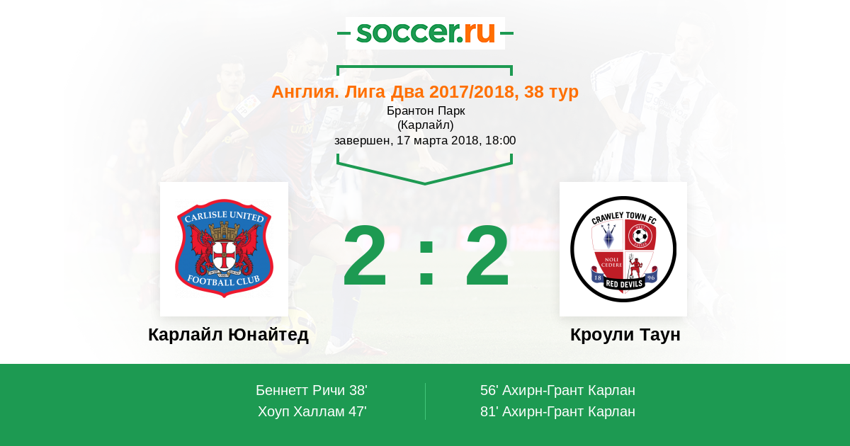 Протокол матча Карлайл Юнайтед против Кроули Таун
